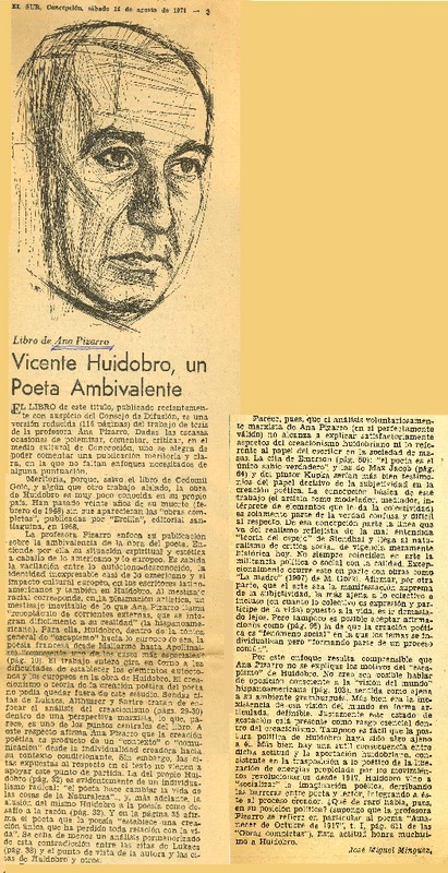Vicente Huidobro, un poeta ambivalente [artículo] José Miguel Mínguez.