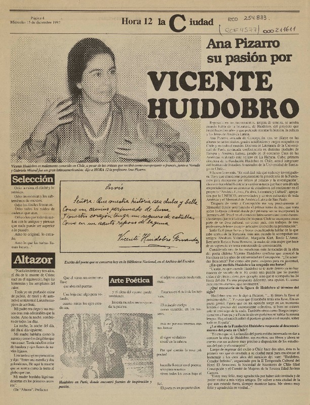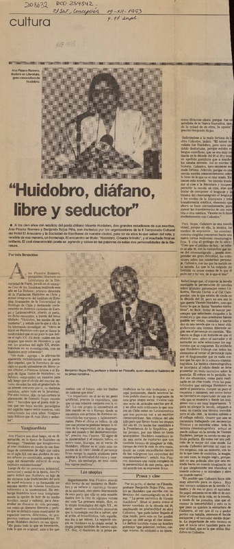 "Huidobro, diáfano, libre y seductor" [artículo] Inés Benavides.