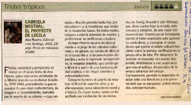 Gabriela Mistral: el proyecto de Lucila [artículo]Crisián Barros.