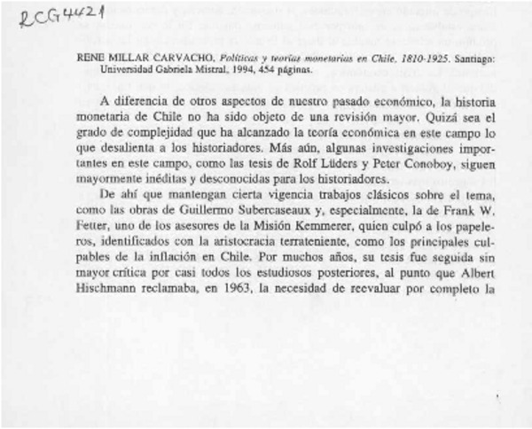 Políticas y teorias monetarias en Chile, 1810-1925 [artículo] Juan Ricardo Couyoumdjian.