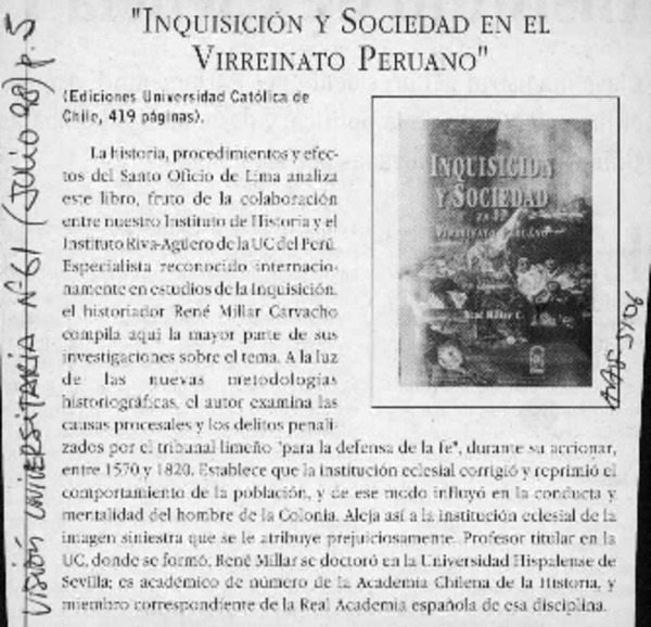 Inquisición y sociedad [artículo] Isabel Cruz de Amenábar.