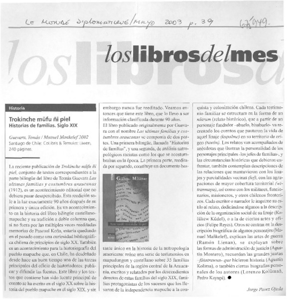 Tomás Guevara: investigador del pueblo araucano [artículo] Jaime González Colville.