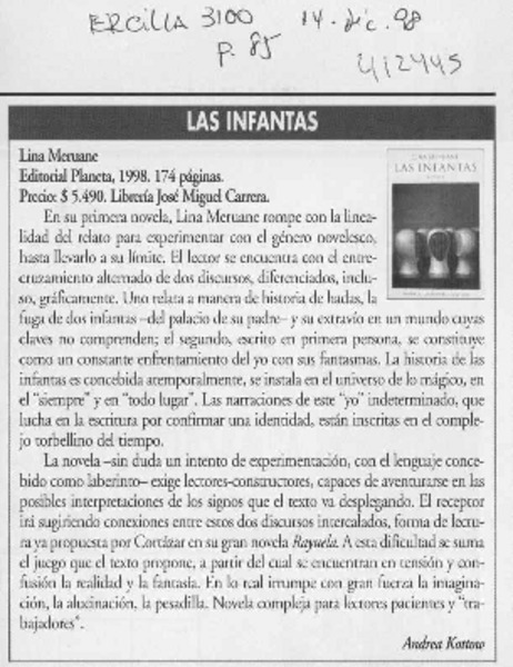 Infantas - Meruane Boza, Lina - Autores chilenos