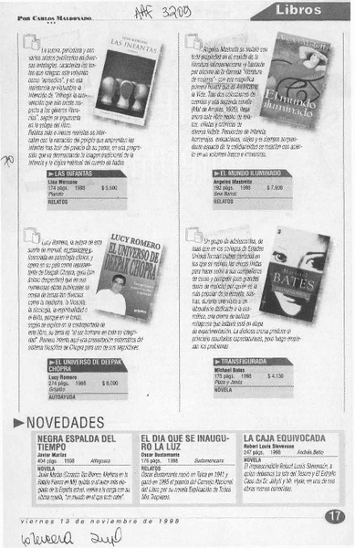 Autores mexicanos - Meruane Boza, Lina - Infantas - Mastretta, Angeles - Mundo iluminado - Romero, Lucy - Universo de Deepak Chopra