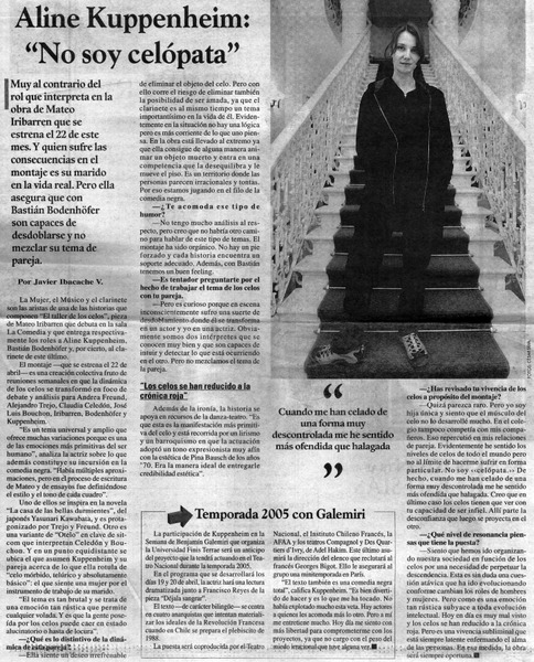 Aline Kuppenheim, "no soy celópata" [artículo] Javier Ibacache V.