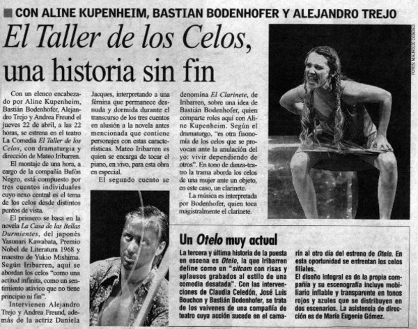 Bodenhöfer y Kuppenheim protagonizan obra basada en novela de Nobel japonés [artículo] Rodrigo Miranda.