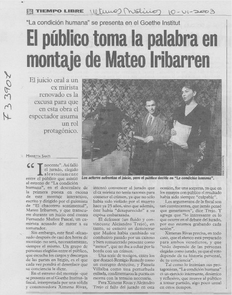 El público toma la palabra en montaje de Mateo Iribarren [artículo] Marietta Santí.