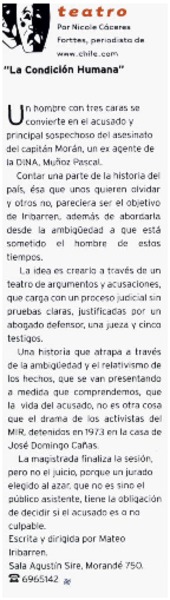 La condición humana": el público tiene la última palabra [artículo] Marcela Küpfer C.