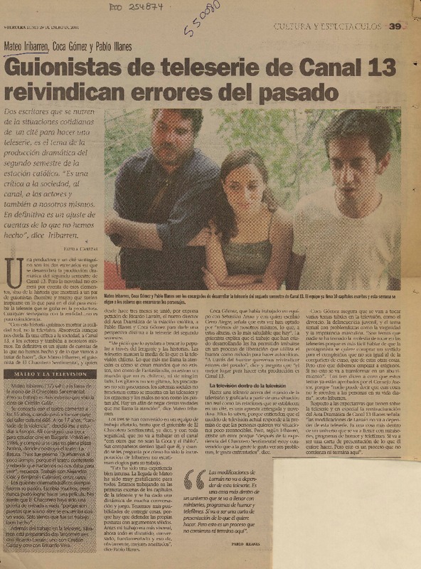 Guionistas de teleserie de Canal 13 reivindican errores del pasado [artículo] Estela Cabezas