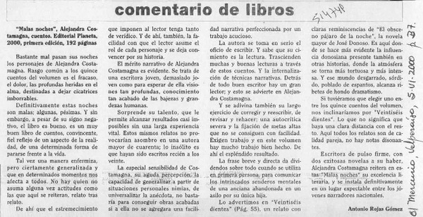 "Malas noches" [artículo] Antonio Rojas Gómez