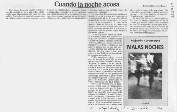 Cuando la noche acosa [artículo] Marino Muñoz Lagos