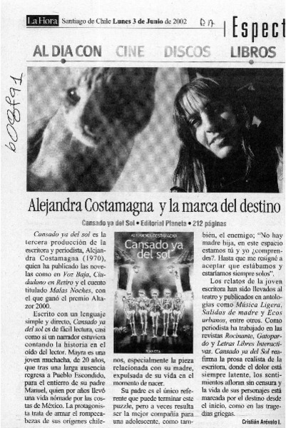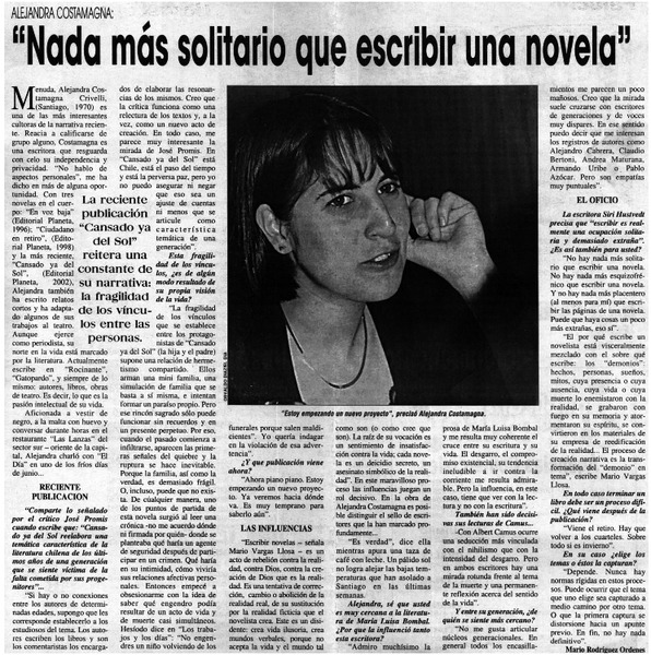 Autoras chilenas - Entrevistas - Costamagna, Alejandra - Cansado ya del sol