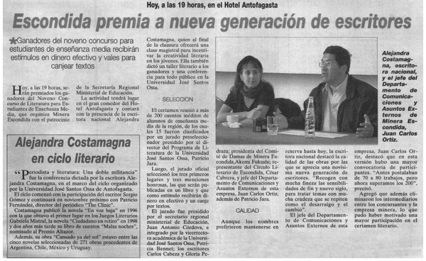 Escondida premia a nueva generación de escritores. [artículo]