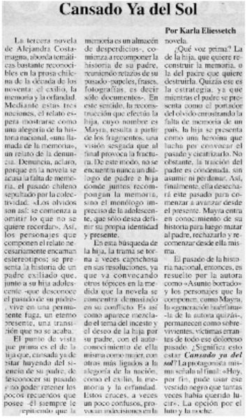 Cansado ya del sol [artículo] Carla Eliessetch.