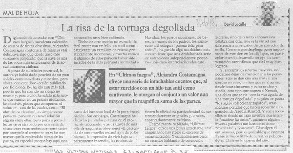 La Risa de la tortuga degollada. [artículo] David Lacalle