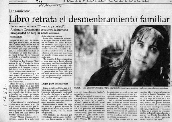 Libro retrata el desmenbramiento familiar [artículo] Elizabeth Neira.