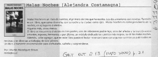 Autoras chilenas - Costamagna, Alejandra - Malas noches