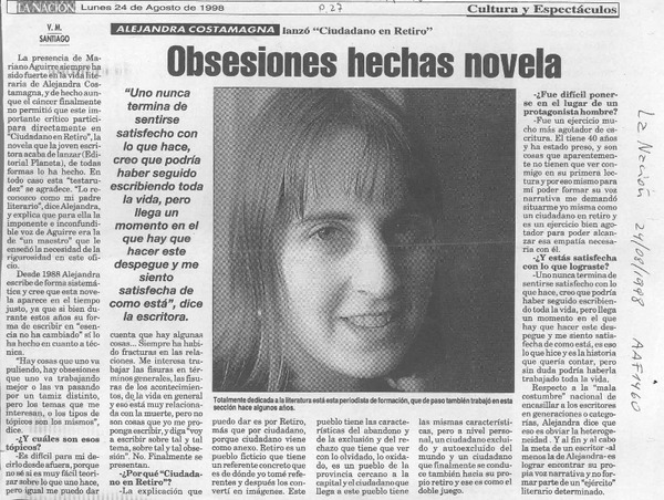 Obsesiones hechas novela [entrevista] [artículo] : V. M.
