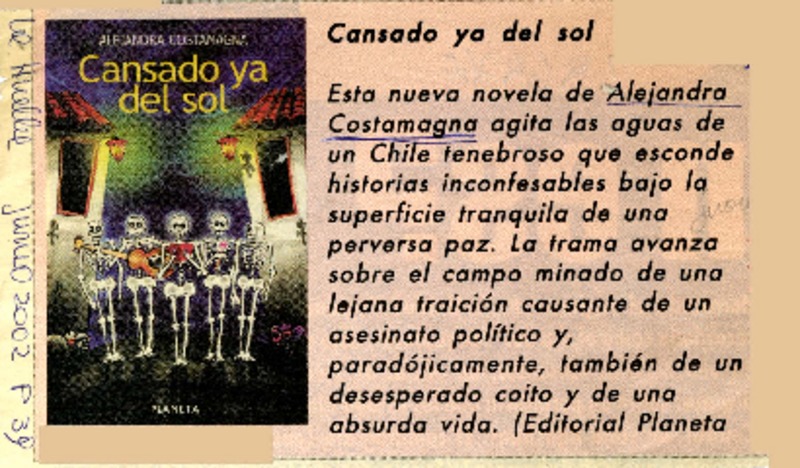 Autoras chilenas - Costamagna, Alejandra - Cansado ya del sol