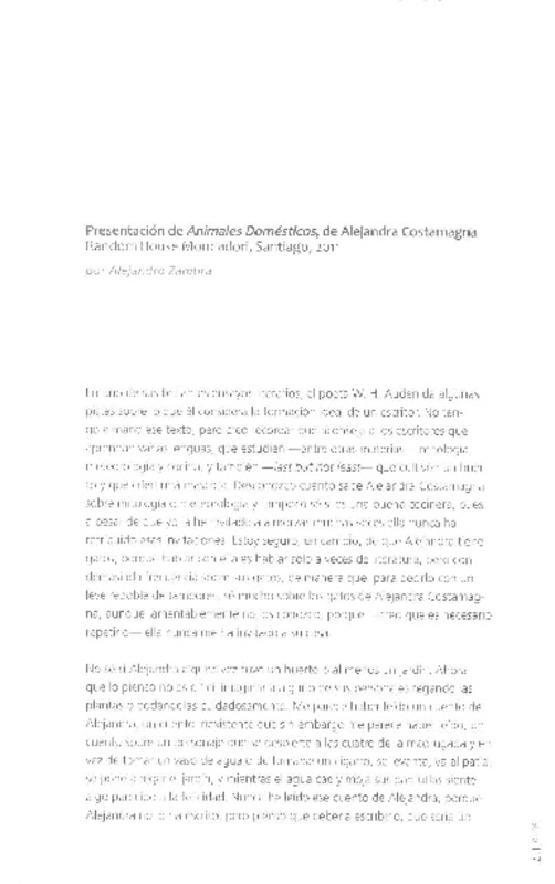 Presentación de Animales domésticos, de Alejandra Costamagna [artículo] Alejandro Zambra.