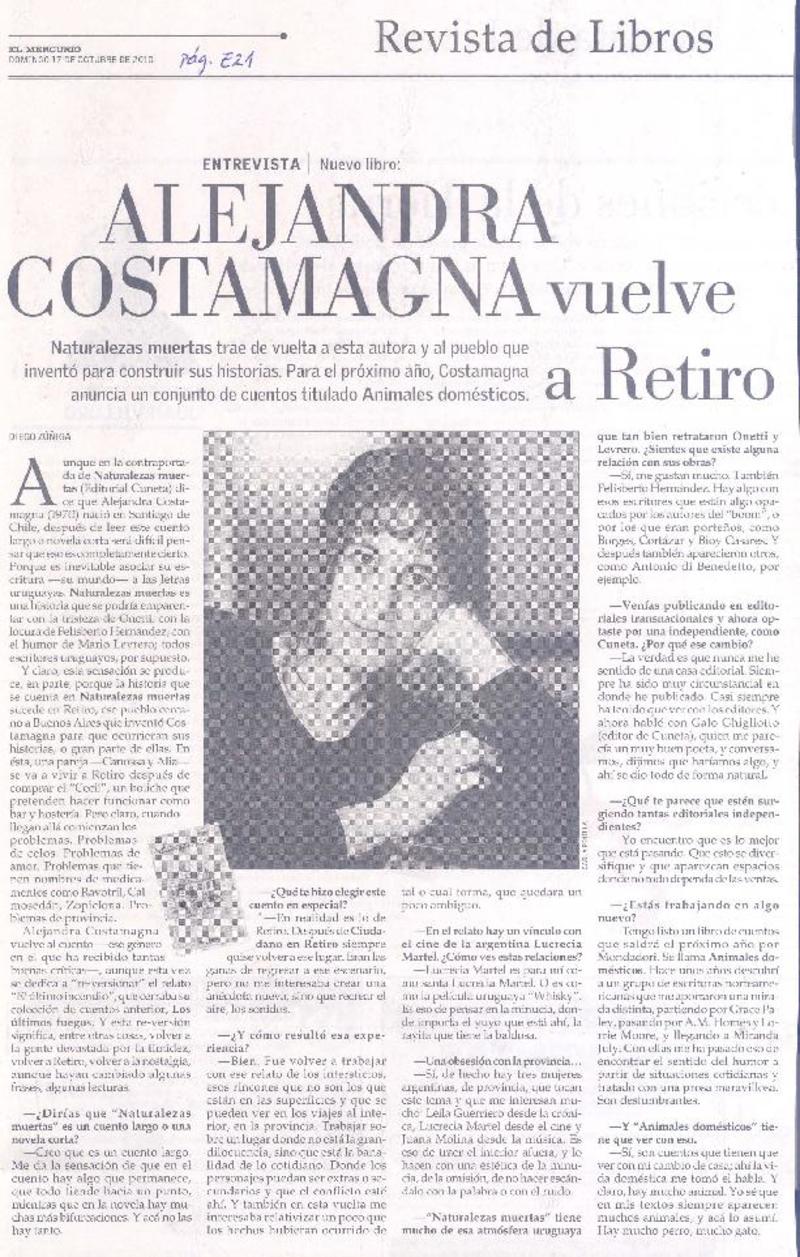 Alejandra Costamagna vuelve a Retiro (entrevista) [artículo] Diego Zúñiga.