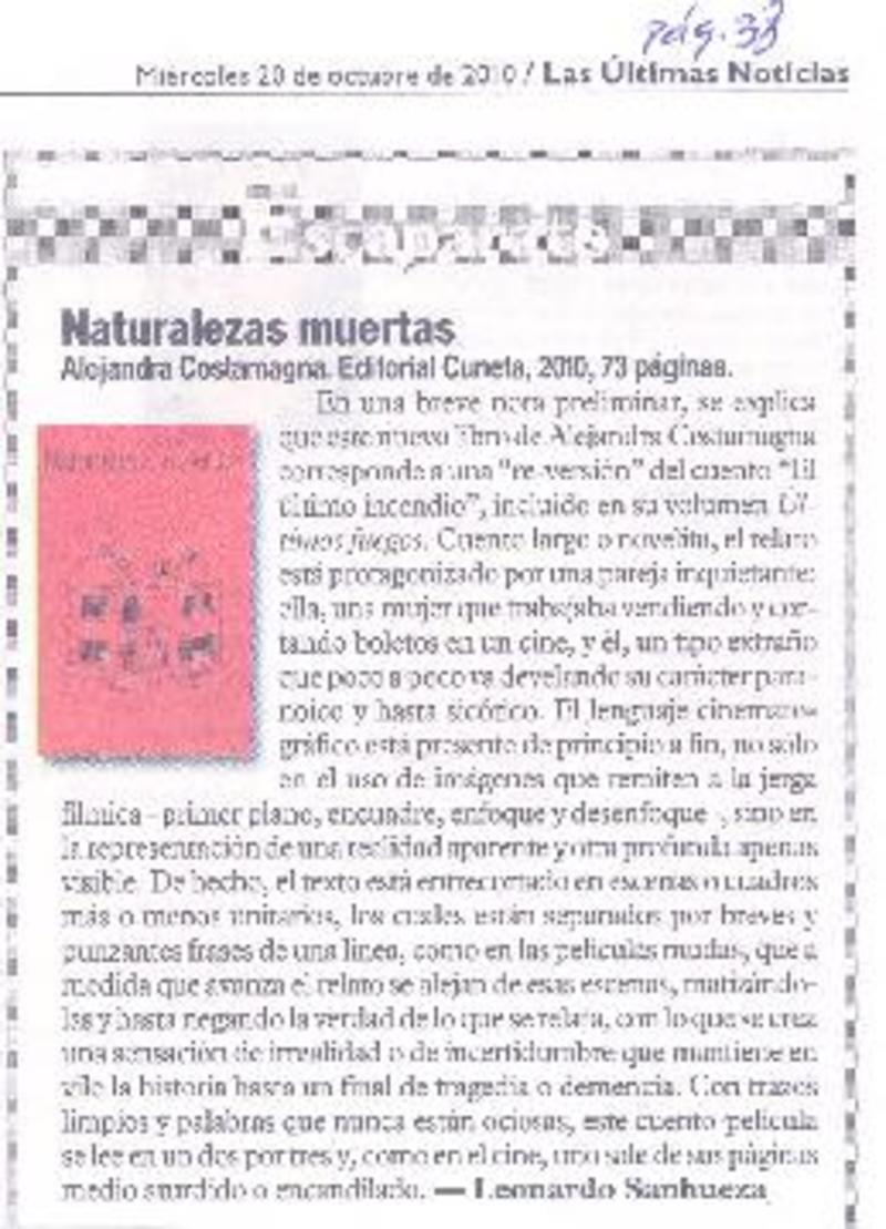 Naturalezas muertas [artículo] Leonardo Sanhueza.