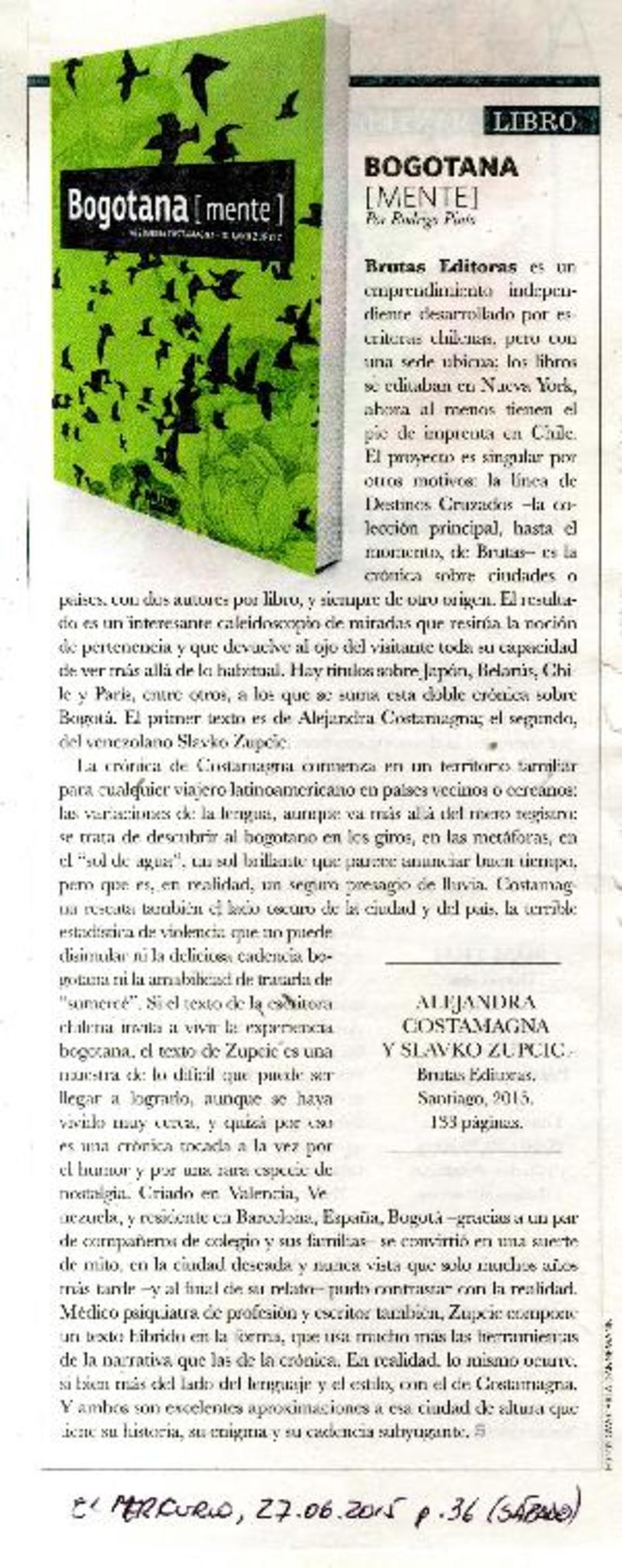 Autoras chilenas - Costamagna, Alejandra - Zupcic, Slavko - Bogotana [mente]