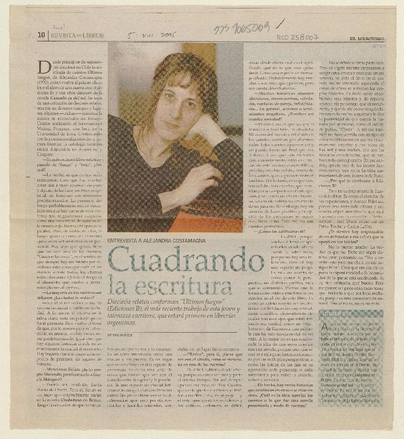 Cuadrando la escritura (entrevista) [artículo] Antonio Muñoz B.