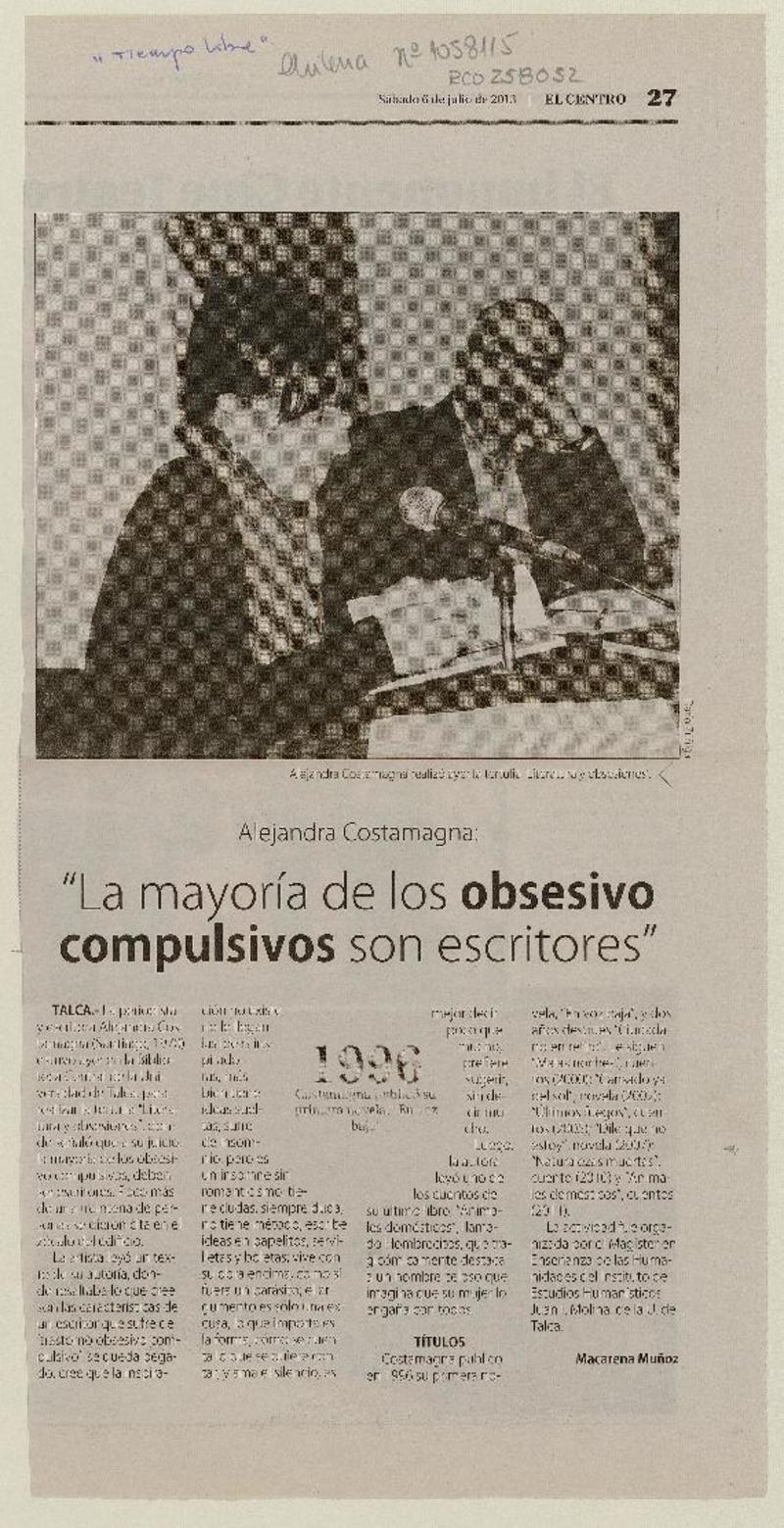 "La mayoría de los obsesivo complusivos son escritores" [artículo] Macarena Muñoz.
