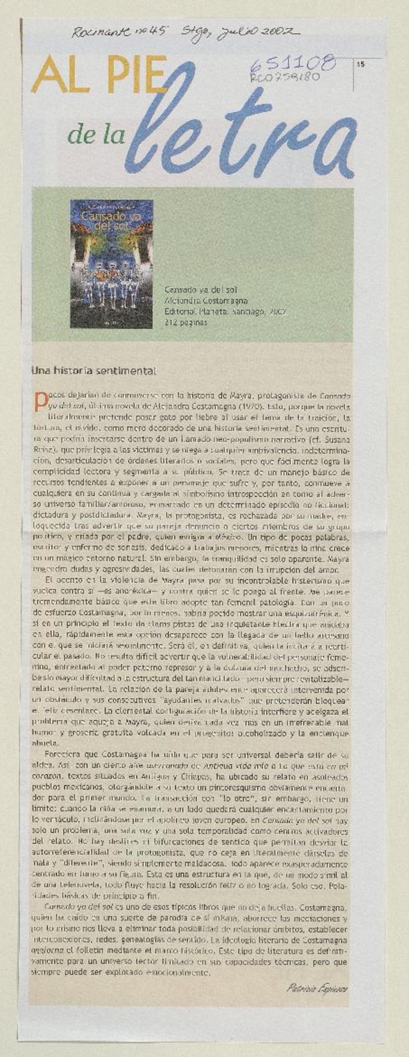 Una historia sentimental [artículo] Patricia Espinosa.