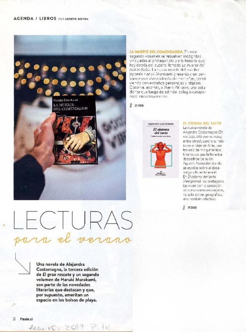 Autoras chilenas - Costamagna, Alejandra - Autores japoneses - Murakami, Haruki - El sistema del tacto - La muerte del comendador