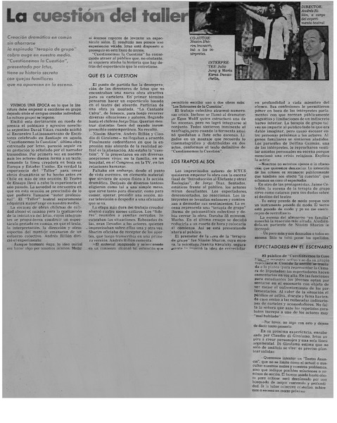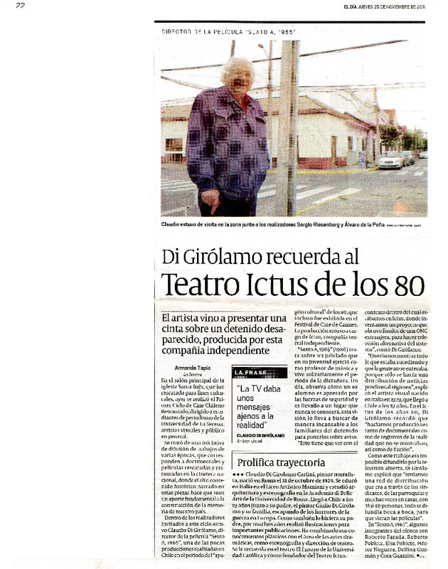 Di Giròlamo recuerda al teatro Ictus de los 80 [artículo] Armando Tapia.