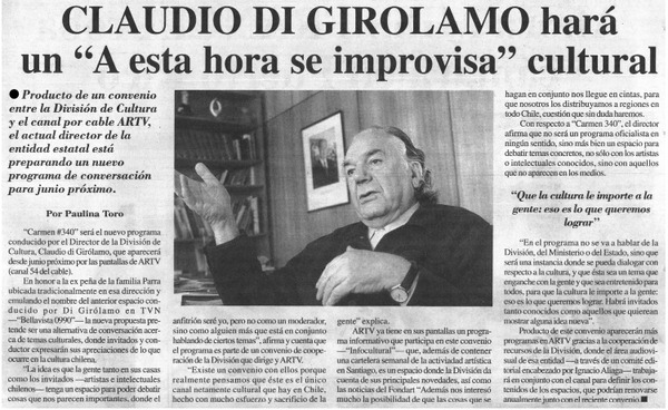 Claudio Di Girolamo hará un "A esta hora se improvisa" cultural [artículo] Paulina Toro.