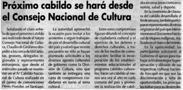 Próximo cabildo se hará desde el Consejo Nacional de Cultura. [artículo]