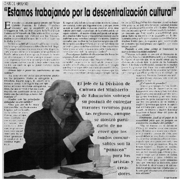 "Estamos trabajando por la descentralización cultural" [entrevista] [artículo] : Jorge Guzmán.