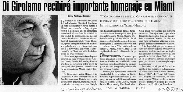 Di Girolamo recibirá importante homenaje en Miami [artículo] Sergio Tanhnuz