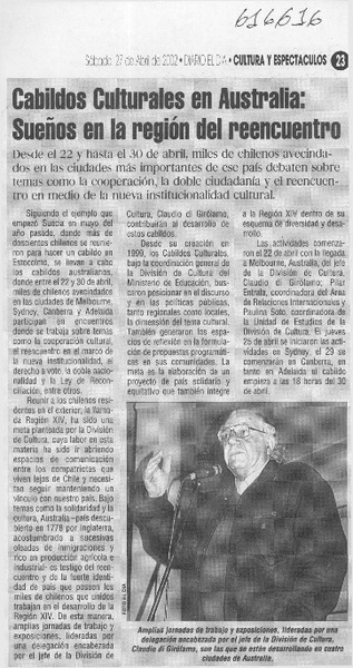 Cabildos culturales en Australia, sueños en la región del reencuentro [artículo]