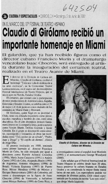 En Miami homenajean a Claudio Di Girolamo [artículo]