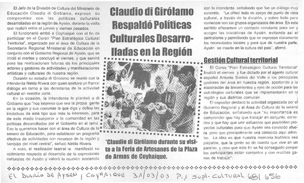 Claudio Di Girólamo respaldó políticas culturales desarrolladas en la región [artículo]