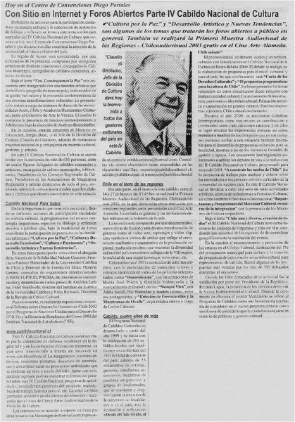 Con sitio en Internet y foros abiertos parte IV Cabildo Nacional de Cultura [artículo]