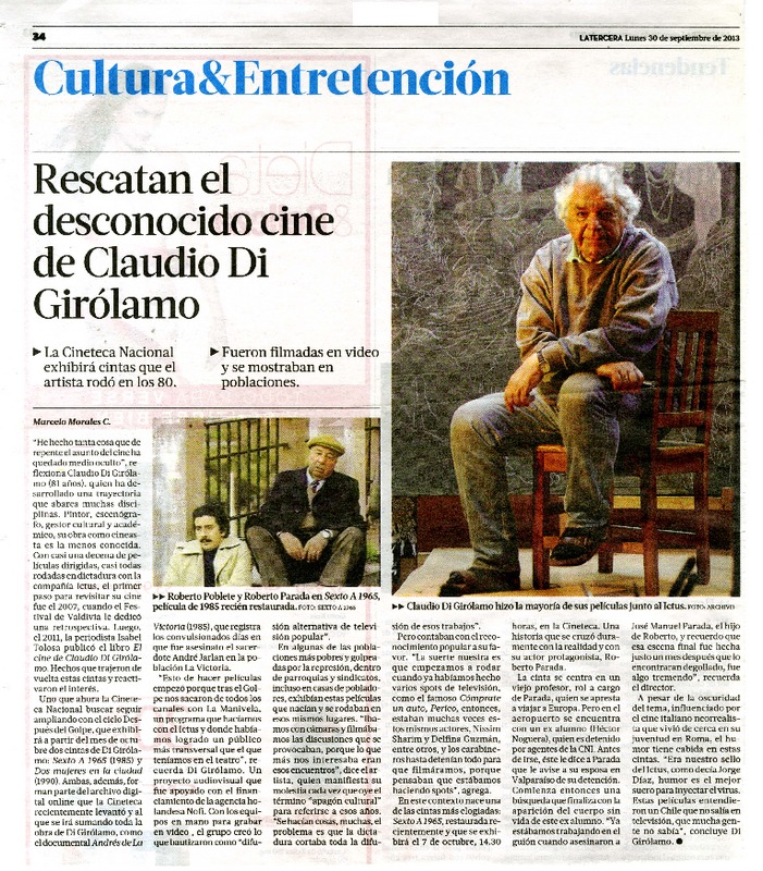 Rescatan el desconocido cine de Claudio Di Girólamo [artículo] Marcelo Morales C.