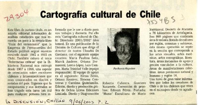 Cartografía cultural de Chile [artículo] Ramón Riquelme.