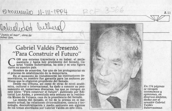 Gabriel Valdés presentó "Para construir el futuro" [artículo].