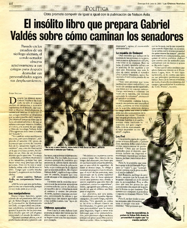 El insólito libro que prepara Gabriel Valdés sobre cómo caminan los senadores [artículo] Giglia Vaccani.
