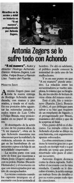 Antonia Zegers se los sufre todo con Achondo [artículo] Marietta Santi.