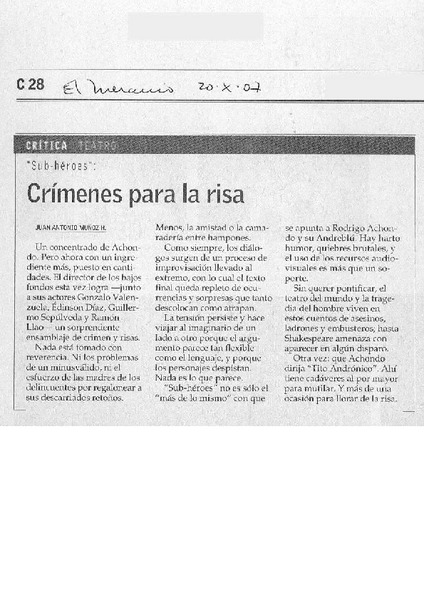Crímenes para l risa [artículo] Juan Antonio Muñoz H.