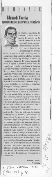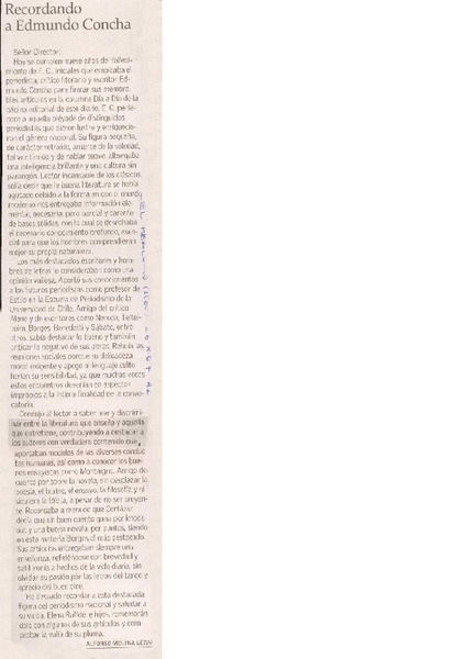 Recordando a Edmundo Concha [artículo] Alfonso Molina Leiva.