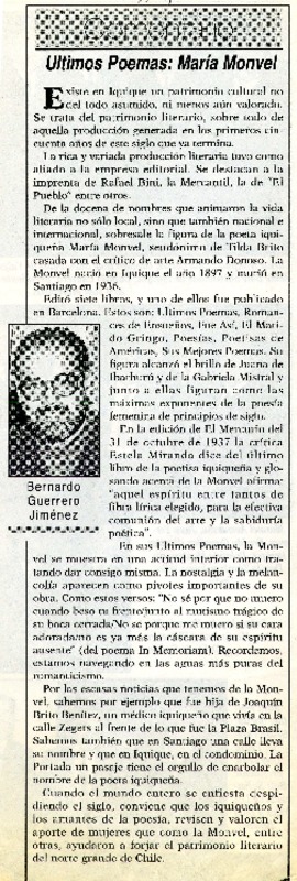 María Monvel, poeta iquiqueña vigía del amor [artículo] Pedro Marambio Vásquez