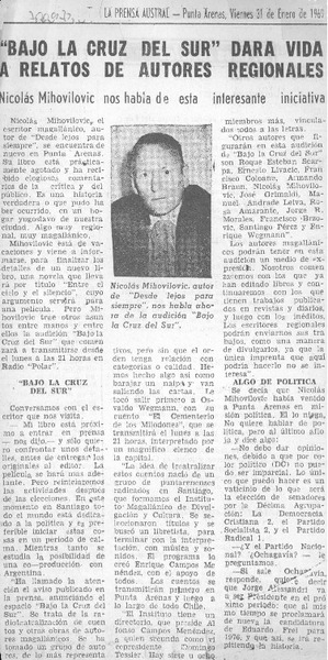 Autores chilenos - Estampas magallánicas - [entrevista] - Mihovilovic, Nicolás - Simbad sin mar