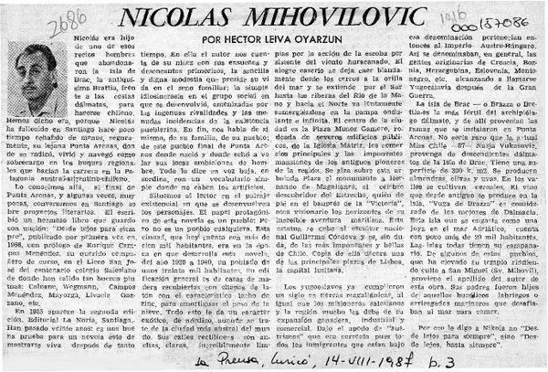 Nicolás Mihovilovic [artículo] Héctor Leiva Oyarzún.
